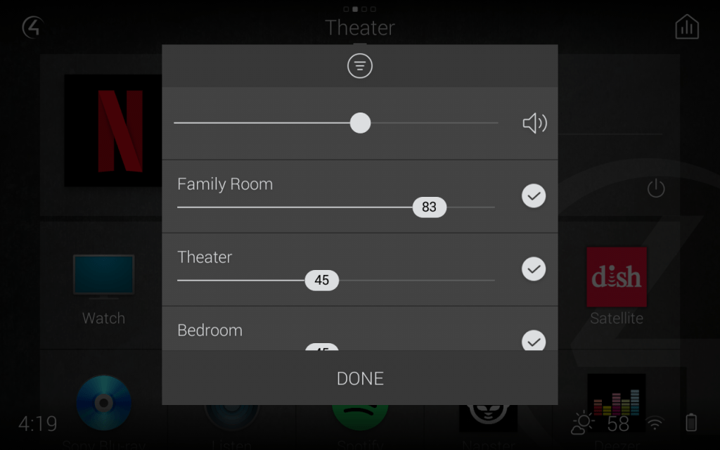 Effortlessly command and customize the distribution of your home media through an intuitive touch screen interface powered by Control4, providing seamless control over audiovisual content for an immersive and personalized entertainment experience.”